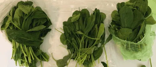 The spinach in the Green Bags, showed on the right, did show signs of wilting; however, there was less moisture build-up and reduced deterioration overall.